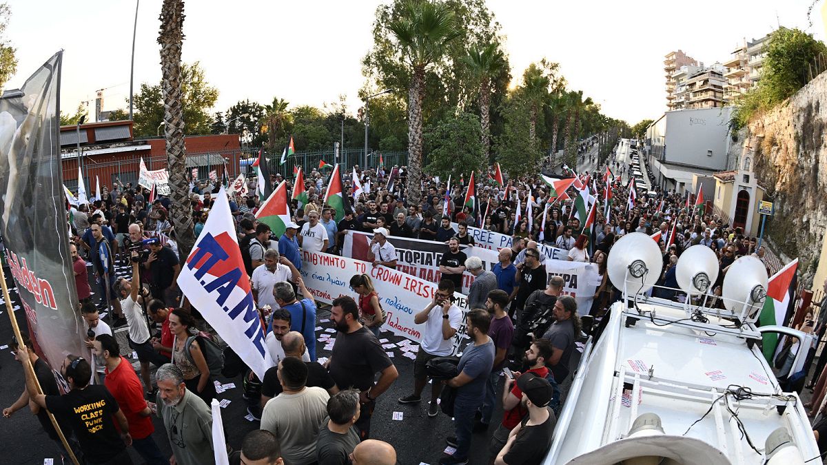 2025. augusztus 14-én, Pireusz kikötőjében több száz görög szakszervezeti tag gyűlt össze, hogy tiltakozzon egy izraeli tengerjáró hajó, a Crown Iris érkezése ellen. A demonstrációt a görög kommunista párt által alapított Összmunkás Harcos Front szervezte, amely évek óta aktívan részt vesz hasonló eseményeken.
